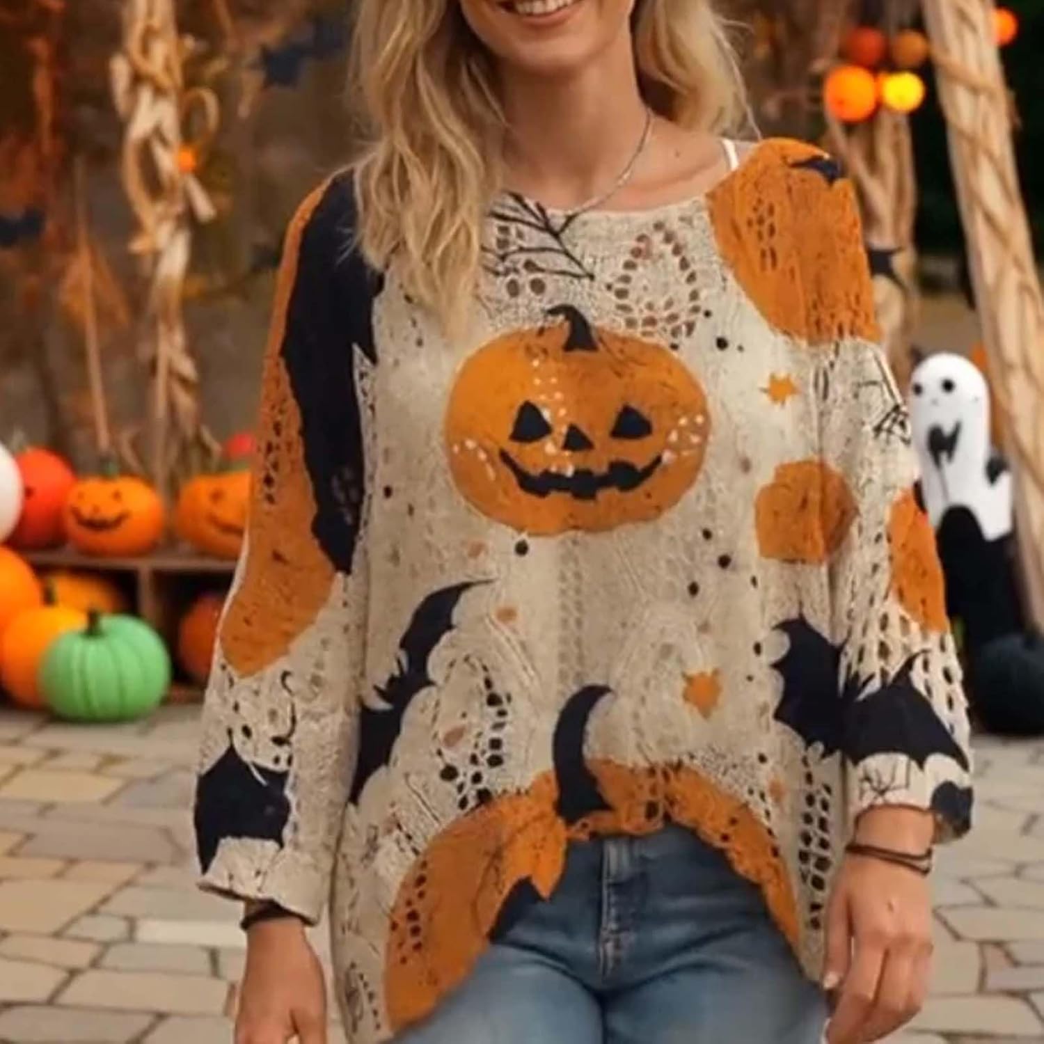 Celebrate Halloween in style with this oversized pullover, blending comfort and festive charm into one unique piece. Perfect for autumn adventures, it boasts delightful designs that make you the life of the party.